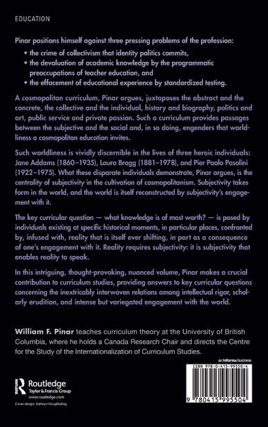 William F. Pinar outlines a cosmopolitan curriculum focused on passionate lives in public service, providing one set of answers to how the field of curriculum studies accepts and attends to the inextricably interwoven relations among intellectual rigor, scholarly erudition, and intense but variegated engagement with the world.