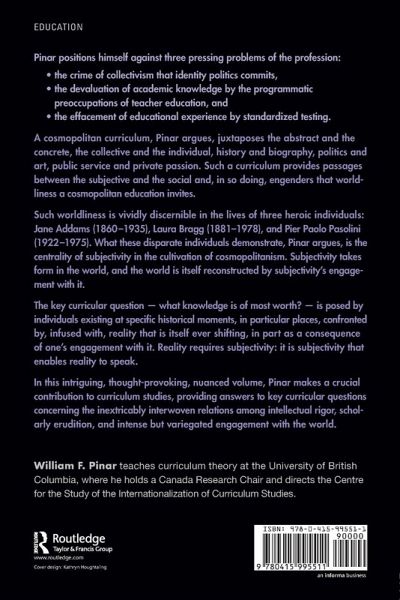 William F. Pinar outlines a cosmopolitan curriculum focused on passionate lives in public service, providing one set of answers to how the field of curriculum studies accepts and attends to the inextricably interwoven relations among intellectual rigor, scholarly erudition, and intense but variegated engagement with the world.