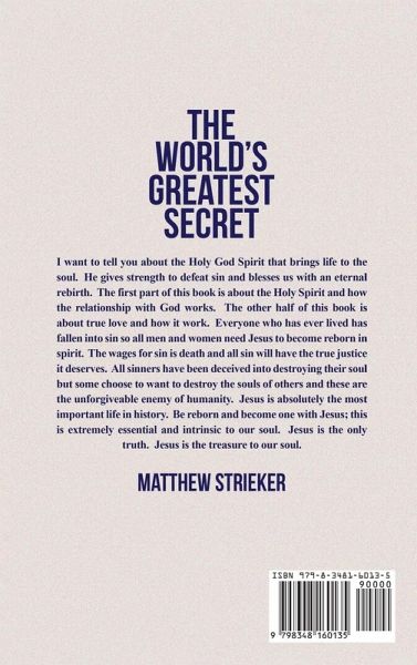 I want to tell you about the Holy God Spirit that brings life to the soul. He gives strength to defeat sin and blesses us with an eternal rebirth. The first part of this book is about the Holy Spirit and how the relationship with God works. The other half of this book is about true love and how it work. Everyone who has ever lived has fallen into sin so all men and women need Jesus to become reborn in spirit. The wages for sin is death and all sin will have the true justice it deserves. All sinners have been deceived into destroying their soul but some choose to want to destroy the souls of others and these are the unforgiveable enemy of humanity. Jesus is absolutely the most important life in history. Be reborn and become one with Jesus; this is extremely essential and intrinsic to our soul. Jesus is the only truth. Jesus is the treasure to our soul.