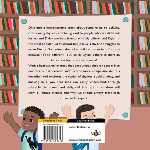 Dive into a heartwarming story about standing up to bullying, overcoming shyness, and being kind to people who are different! Joshua and Dylan are best friends with big differences! Dylan is the most popular kid at school, but Joshua is shy and struggles to make friends. Sometimes the other children make fun of Joshua because he's so different - but luckily Dylan is there to share an important lesson about shyness! With a heartwarming story that encourages children ages 6-8 to embrace our differences and become more compassionate, this beautiful read explores the topics of shyness, social anxiety, and bullying in a way that kids can easily understand. Through relatable characters and delightful illustrations, children will learn all about shyness and why we should always treat each other with respect.