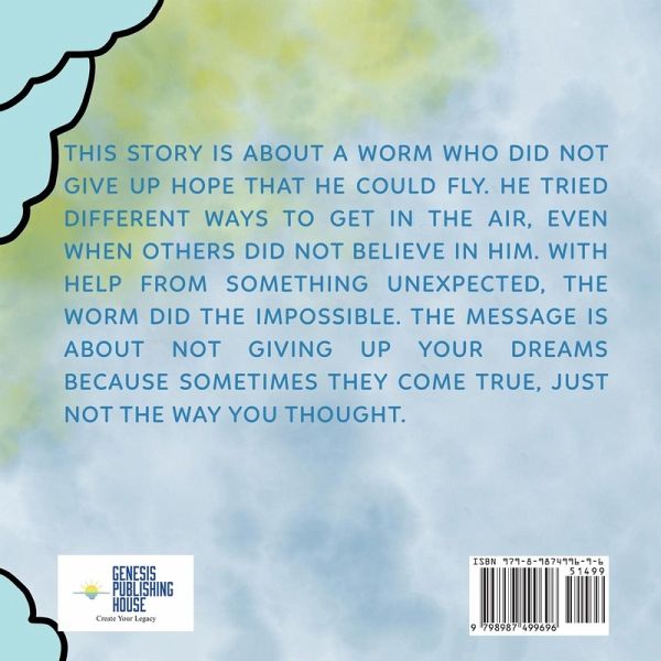 THIS STORY IS ABOUT A WORM WHO DID NOT GIVE UP HOPE THAT HE COULD FLY. HE TRIED DIFFERENT WAYS TO GET IN THE AIR, EVEN WHEN OTHERS DID NOT BELIEVE IN HIM. WITH HELP FROM SOMETHING UNEXPECTED, THE WORM DID THE IMPOSSIBLE. THE MESSAGE IS NOT GIVING UP YOUR DREAMS BECAUSE SOMETIMES THEY COME TRUE, JUST NOT THE WAY YOU THOUGHT.
