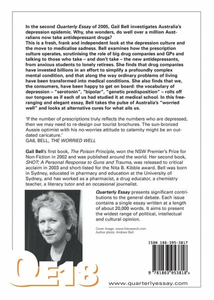 In the second Quarterly Essay of 2005, Gail Bell investigates Australia's depression epidemic. Why, she wonders, do well over a million Australians now take antidepressant drugs? This is a fresh, frank and independent look at the depression culture and the move to medicalise sadness. Bell examines how the prescription culture operates, scrutinising the role of big drug companies and GPs and talking to those who take - and don't take - the new antidepressants, from anxious students to lonely retirees. She finds that drug companies have invested billions in an effort to simplify a profoundly complex mental condition, and that along the way ordinary problems of living have been transformed into medical conditions. She also finds that we, the consumers, have been happy to get on board: the vocabulary of depression - "serotonin", "bipolar", "genetic predisposition" - rolls off our tongues as if each of us had studied it at medical school. In this freeranging and elegant essay, Bell takes the pulse of Australia's "worried well" and looks at alternative cures for what ails us. 'If the number of prescriptions truly reflects the numbers who are depressed, then we may need to re-design our tourist brochures. The sun-bronzedAussie optimist with his no-worries attitude to calamity might be an outdated caricature.' Gail Bell, The Worried Well