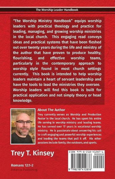 "The Worship Ministry Handbook" equips worship leaders with practical theology and practice for leading, managing, and growing worship ministries in the local church. This engaging read conveys ideas and practical systems that have been fleshed out over twenty years during the life and ministry of the author that have proven to produce healthy, flourishing, and effective worship teams, particularly in the contemporary approach to worship style found in most church settings currently. This book is intended to help worship leaders maintain a heart of servant leadership and have the tools to lead the ministries they oversee. Worship leaders will find this book is built for practical application and not simply theory or head knowledge.