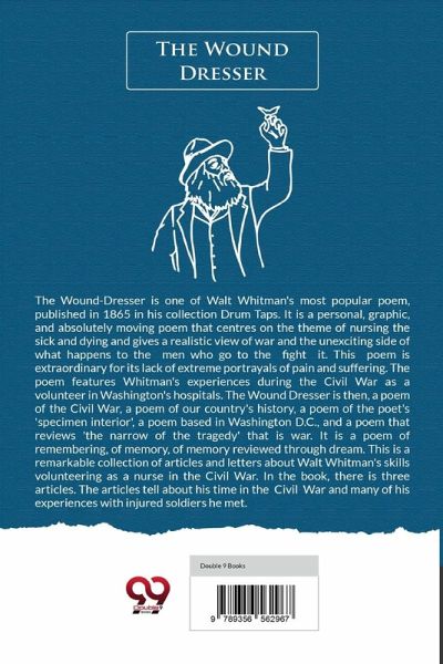 The Wound-Dresser is one of Walt Whitman's most popular poem, published in 1865 in his collection Drum Taps. It is a personal, graphic, and absolutely moving poem that centres on the theme of nursing the sick and dying and gives a realistic view of war and the unexciting side of what happens to the men who go to the fight it. This poem is extraordinary for its lack of extreme portrayals of pain and suffering. The poem features Whitman's experiences during the Civil War as a volunteer in Washington's hospitals. The Wound Dresser is then, a poem of the Civil War, a poem of our country's history, a poem of the poet's 'specimen interior', a poem based in Washington D.C., and a poem that reviews 'the narrow of the tragedy' that is war. It is a poem of remembering, of memory, of memory reviewed through dream. This is a remarkable collection of articles and letters about Walt Whitman's skills volunteering as a nurse in the Civil War. In the book, there is three articles. The articles tell about his time in the Civil War and many of his experiences with injured soldiers he met.