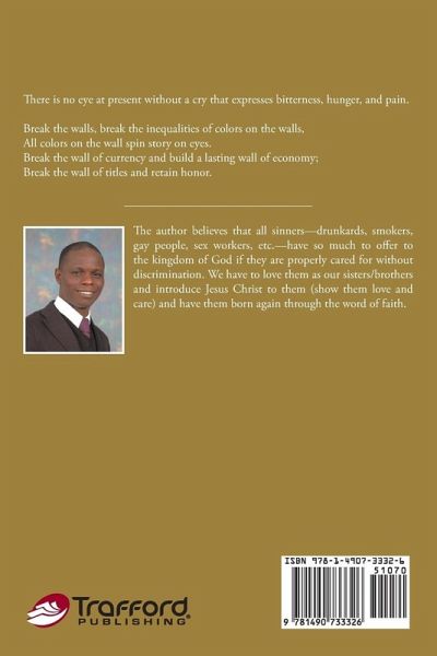 I was a great sinner, committing all kinds of atrocities. I never went to church; I was a womanizer and blasphemer of the gospel of Jesus Christ. Now I found grace, repentance, forgiveness, and perfection. I am prepared by grace, honored, qualified, chosen, accepted, and cleansed by the blood of Jesus?I am now a preacher of the gospel that I once condemned. Pastor Emmanuel Brown Omojevwe is a recognized and respected pastor, founder, and general overseer of True Vine Evangelical Bible Ministry worldwide. He is based in Italy, where the headquarters of the church is found. He is a prophet, teacher, evangelist, pastor, preacher, prolific writer, poet, and international public speaker. He is a man who God is using all over Europe to anoint, deliver, and bring transformation in the lives of millions. He is a husband and father to millions, a humble man of God who believes that God can use anyone irrespective of his or her sins, circumstances, and backgrounds as long as he or she is pruned by God. His desire is to preach the gospel of Christ to all nations so that peace could be obtained and the body of Christ is unified. Also he is of the opinion that materialism gospel should not be a focal point of a true man of God.