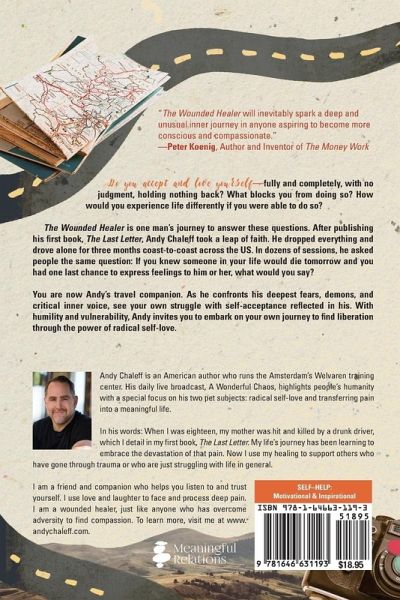 "Andy Chaleff's latest book is 'a remarkable road trip involving personal discovery,' inviting readers to 'confront their deepest vulnerabilities' and offering 'a transformative exploration of self-acceptance and genuine human connection.'" - Kirkus Reviews Are you fully at peace with who you are-unreservedly embracing yourself without judgment? What stands in your way? Imagine how differently you might experience life if you could break through these barriers. In The Wounded Healer, Andy Chaleff embarks on a transformative journey, inviting you to explore these profound questions alongside him. Following the success of his first book, The Last Letter, Andy takes a bold step into the unknown, spending three months driving solo across the United States. Along the way, he engages in heartfelt conversations with strangers, posing a poignant question: If you had one final opportunity to express your deepest feelings to someone before they passed away, what would you say? As you journey with Andy, you'll find your own battles with self-acceptance mirrored in his. Witness his confrontation with inner demons, the harsh critic within, and the shadows of his darkest fears. Through his raw honesty and vulnerable storytelling, Andy not only learns to love himself but also paves the way for you to embark on your own voyage toward self-acceptance. The Wounded Healer is lavishly illustrated with photographs of the people and places Andy encountered, enhancing the deeply personal elements that make this work memorable. Whether visiting his mother's grave or engaging in spontaneous, heartfelt exchanges, Andy's journey is one of profound self-reflection and growth. The episodic nature of the narrative allows for a series of confessional vignettes, each offering a unique insight into the human experience. With each page, The Wounded Healer offers more than just a narrative; it provides tools for your journey of healing. Engage with the philosophical insights woven through Andy's story, explore the liberating power of radical self-love, and find motivation for personal change. This book will enhance your self-awareness, build your emotional resilience, and deepen your connections with others. Winner of two book competitions and awarded the "Get it" accolade by Kirkus Reviews, The Wounded Healer is more than just an autobiographical work-it is a guide to healing and unconditional self-embrace. Whether you're seeking personal growth, philosophical wisdom, or simply a story of human connection, The Wounded Healer is a remarkable road trip of personal discovery that will resonate with anyone on a path of self-improvement and radical acceptance.
