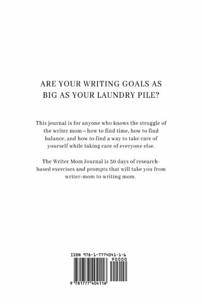 The Writer Mom Journal: 30 Practical Ways to Find Focus For Your Writing Life Are your writing goals as big as your laundry pile? This journal is for anyone who knows the struggle of the writer mom-how to find time, how to find balance, and how to find a way to take care of yourself while taking care of everyone else. The Writer Mom Journal is 30 days of research-based exercises and prompts that will help you find balance and take you from writer-mom to writing mom.