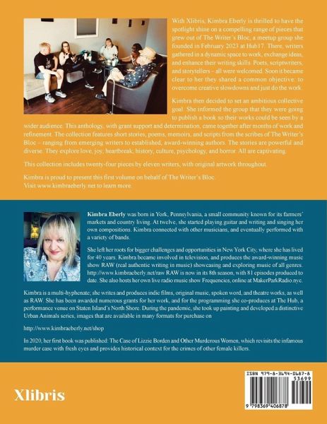 With Xlibris, Kimbra Eberly is thrilled to have the spotlight shine on a compelling range of pieces that grew out of The Writer's Bloc, a meetup group she founded in February 2023 at Hub17. There, writers gathered in a dynamic space to work, exchange ideas, and enhance their writing skills. Poets, scriptwriters, and storytellers - all were welcomed. Soon it became clear to her they shared a common objective: to overcome creative slowdowns and just do the work. Kimbra then decided to set an ambitious collective goal. She informed the group that they were going to publish a book so their works could be seen by a wider audience. This anthology, with grant support and determination, came together after months of work and refinement. The collection features short stories, poems, memoirs, and scripts from the scribes of The Writer's Bloc - ranging from emerging writers to established, award-winning authors. The stories are powerful and diverse. They explore love, joy, heartbreak, history, culture, psychology, and horror. All are captivating. This collection includes twenty-four pieces by eleven writers, with original artwork throughout. Kimbra is proud to present this first volume on behalf of The Writer's Bloc.