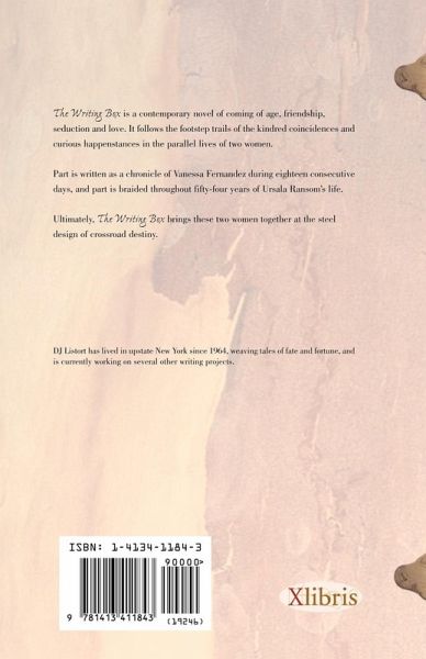 The Writing Box is a contemporary novel of coming of age, friendship, seduction and love. It follows the footstep trails of the kindred coincidences and curious happenstances of two women. Part is written as a chronicle of Vanessa Fernandez during eighteen consecutive days, and part is braided throughout fifty-four years of Ursula Ransom¿s life. Ulitmately, The Writing Box brings these two women together at the steel design of crossroad destiny.