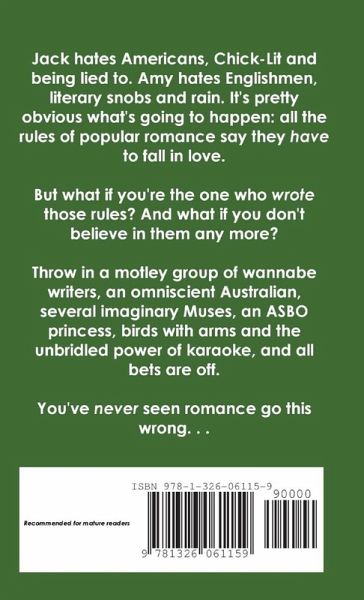Jack hates Americans, Chick-Lit and being lied to. Amy hates Englishmen, literary snobs and rain. It's pretty obvious what's going to happen: all the rules of popular romance say they have to fall in love. But what if you're the one who wrote those rules? And what if you don't believe in them any more? Throw in a motley group of wannabe writers, an omniscient Australian, several imaginary Muses, an ASBO princess, birds with arms and the unbridled power of karaoke, and all bets are off. You've never seen romance go this wrong...