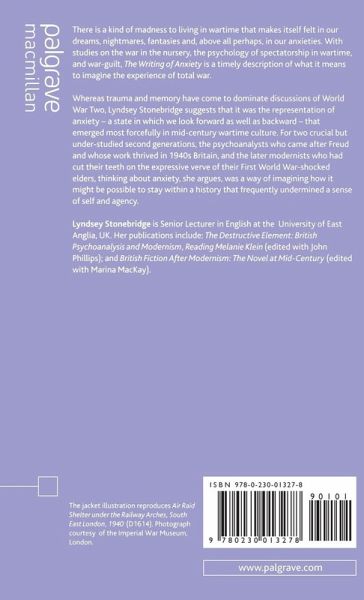 List of Illustrations Acknowledgements Introduction: Dreading Forward: The Writing of Anxiety at Mid-Century Anxiety at a Time of Crisis: Psychoanalysis and Wartime The Childhood of Anxiety Bombs and Roses: The Writing of Anxiety in Henry Green's Caught Bombs, Birth and Trauma: Henry Moore and D.W.Winnicott The Writing of Post-War Guilt: Rose Macaulay and Rebecca West Hearing them Speak: Voices in Bion, Muriel Spark and Penelope Fitzgerald Postscript Bibliography Index