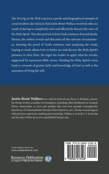 The Writing on the Wall concerns a partly autobiographical example of a real modern-day miracle that Justin Brent Wallace received only as a result of daring to completely trust and effectively discern the voice of the Holy Spirit. This also proved to him God's existence beyond doubt. Herein, the author reveals and discusses all the relevant circumstances, showing the proof of God's existence and analyzing the result, hoping to teach others how to better see and discern the Holy Spirit's presence in their lives. He urges the reader to apply what he reveals, supported by numerous Bible verses. Heeding the Holy Spirit's voice leads to rewards of greater faith and knowledge of God as well as the assurance of living his will.