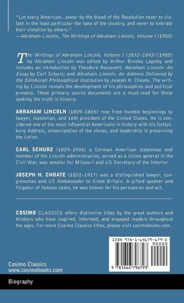 "Let every American...swear by the blood of the Revolution never to violate in the least particular the laws of the country, and never to tolerate their violation by others." -Abraham Lincoln, The Writings of Abraham Lincoln, Volume I (1905) The Writings of Abraham Lincoln, Volume I (1832-1843) (1905) by Abraham Lincoln was edited by Arthur Brooks Lapsley and includes an introduction by Theodore Roosevelt; Abraham Lincoln: An Essay by Carl Schurz; and Abraham Lincoln: An Address Delivered by the Edinburgh Philosophical Institution by Joseph H. Choate. The writing by Lincoln reveals the development of his philosophies and political prowess. These primary source documents are a must-read for those seeking the truth in history.