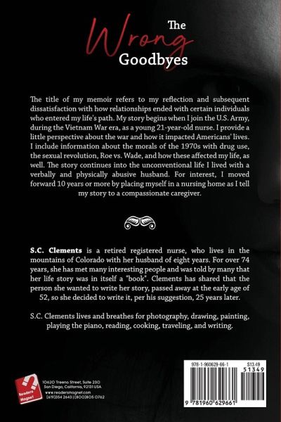 The title of my memoir refers to my reflection and subsequent dissatisfaction with how relationships ended with certain individuals who entered my life's path. My story begins when I join the U.S. Army, during the Vietnam War era, as a young 21-year-old nurse. I provide a little perspective about the war and how it impacted Americans' lives. I include information about the morals of the 1970s with drug use, the sexual revolution, Roe vs. Wade, and how these affected my life, as well. The story continues into the unconventional life I lived with a verbally and physically abusive husband. For interest, I moved forward 10 years or more by placing myself in a nursing home as I tell my story to a compassionate caregiver.