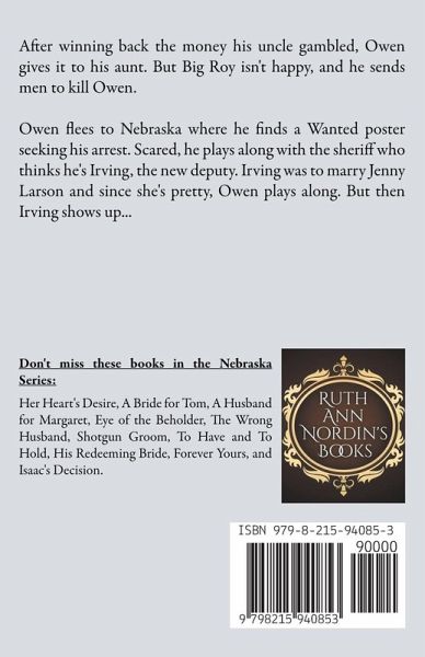 After winning back the money his uncle gambled, Owen gives it to his aunt. But Big Roy isn't happy, and he sends men to kill Owen. Owen flees to Nebraska where he finds a Wanted poster seeking his arrest. Scared, he plays along with the sheriff who thinks he's Irving, the new deputy. Irving was to marry Jenny Larson and since she's pretty, Owen plays along. But then Irving shows up...