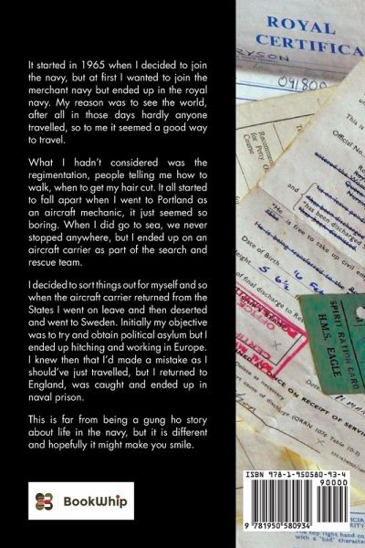 It started in 1965 when I decided to join the navy, but at first I wanted to join the merchant navy but ended up in the royal navy. My reason was to see the world, after all in those days hardly anyone travelled, so to me it seemed a good way to travel. What I hadn't considered was the regimentation, people telling me how to walk, when to get my hair cut. It all started to fall apart when I went to Portland as an aircraft mechanic, it just seemed so boring. When I did go to sea, we never stopped anywhere, but I ended up on an aircraft carrier as part of the search and rescue team. I decided to sort things out for myself and so when the aircraft carrier returned from the States I went on leave and then deserted and went to Sweden. Initially my objective was to try and obtain political asylum but I ended up hitching and working in Europe. I knew then that I'd made a mistake as I should've just travelled, but I returned to England, was caught and ended up in naval prison. This is far from being a gung ho story about life in the navy, but it is different and hopefully it might make you smile.