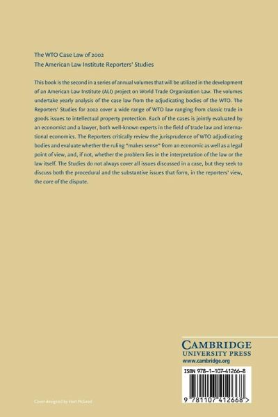 This book, published in 2005, is the second annual report of the American Law Institute (ALI) project on World Trade Organization Law. The project undertakes yearly analysis of the case law from the adjudicating bodies of the WTO. The Reporters' Studies for 2002 cover a wide range of WTO law ranging from classic trade in goods issues to intellectual property protection. Each case is jointly evaluated by well-known experts in trade law and international economics. The reporters critically review the jurisprudence of WTO adjudicating bodies and evaluate whether the ruling 'makes sense' from an economic as well as legal point of view, and if not, whether the problem lies in the interpretation of the law or the law itself. The studies do not cover all issues discussed in a case, but they seek to discuss both the procedural and the substantive issues that form the 'core' of the dispute.