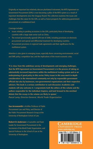 Explores the increasing importance of the WTO Agreement on Government Procurement in the multilateral trading system and the resulting challenges.