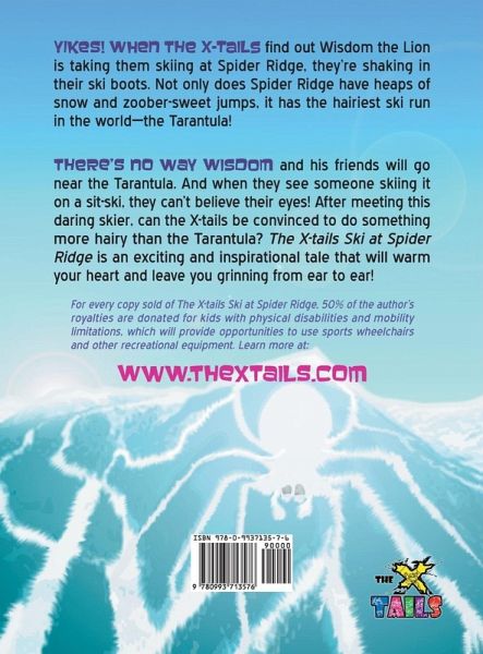 Yikes! When the X-tails find out Wisdom the Lion is taking them skiing at Spider Ridge, they're shaking in their ski boots. Not only does Spider Ridge have heaps of snow and zoober-sweet jumps, it has the hairiest ski run in the world- the Tarantula! There's no way Wisdom and his friends will go near the Tarantula. And when they see someone skiing it on a sit-ski, they can't believe their eyes! After meeting this daring skier, can the X-tails be convinced to do something more hairy than the Tarantula? The X-tails Ski at Spider Ridge is an exciting and inspirational tale that will warm your heart and leave you grinning from ear to ear! With a message about inclusion, this is a wonderful story for children of all ages! For every copy sold of The X-tails Ski at Spider Ridge, 50% of the author's royalties are donated for kids with physical disabilities and mobility limitations, which will provide opportunities to use sports wheelchairs and other recreational equipment.