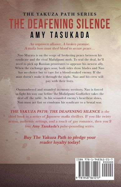An unproven alliance. A broken promise. A mafia boss must shed blood to secure peace... Nao Murata is on the verge of brokering peace between his syndicate and the Mafufugumi mob. To seal the deal, he'll need to pick up Russian prostitutes to appease his newest ally. When the exchange goes sour, both sides draw blades and Nao has no choice but to care for a blood-soaked enemy. If the man doesn't make it through the night, Nao and his crew will pay with their lives. Outnumbered and stranded in enemy territory, Nao is forced to fight his way out before the Mafufugumi Godfather takes the deal off the table. As his wounded enemy's heartbeat slows, Nao must act fast or condemn his syndicate to a brutal war. The Yakuza Path: The Deafening Silence is the fourth book in a series of Japanese mafia thrillers. If you like twisty action, authentic settings, and a touch of gay romance, then you'll love Amy Tasukada's pulse-pounding series. Buy The Deafening Silence to immerse yourself in a bloody mafia tale today!