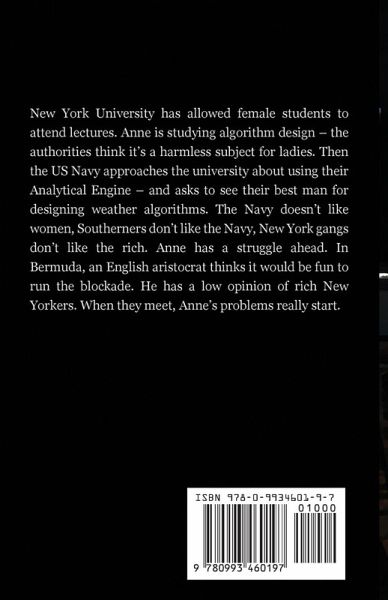 Anne Rossie hated the Civil War. Her brother had marched off to battle and had not come back. The Peace Democrats were trying to sabotage the war effort. New York could become a battleground. Anne responded by turning her back on events and concentrating on her university studies. Her father had quarelled with his powerful British family and had been forced to move to New York. He had made his fortune through several shrewd investments. One of these had been the purchase of America's only Analytical Engine. He hoped that every New York financier would pay him to use it. The United States Navy was trying to blockade the southern ports. They were losing ships and men in storms. A young naval officer travelled to New York to ask the university authorities whether they could use the Analytical Engine to predict storms. He was dismayed when they told him that Anne was their expert at writing algorithms for the Engine. In Bermuda, an aristocratic Royal Navy officer had purchased a fast steamship. He intended to use it to run the blockade. His ship was newer than anything in the US Navy. He was confident that he could run the blockade and make his fortune. He had a low opinion of Yankee merchant families. Unfortunately, Britain was neutral in the conflict. A British officer could not take part. He was forced to sail under an assumed name. Then Anne's grandfather died. The Rossie family's man of business crossed the Atlantic to tell Anne that she had a most unusual inheritance. Anne's new fortune allowed her to visit Bermuda. She encountered an enigmatic blockade runner, a scoundrel of the worst kind. Anne Rossie hated the Civil War. Her brother had marched off to battle and had not come back. The Peace Democrats were trying to sabotage the war effort. New York could become a battleground. Anne responded by turning her back on events and concentrating on her university studies. Her father had quarelled with his powerful British family and had been forced to move to New York. He had made his fortune through several shrewd investments. One of these had been the purchase of America's only Analytical Engine. He hoped that every New York financier would pay him to use it. The United States Navy was trying to blockade the southern ports. They were losing ships and men in storms. A young naval officer travelled to New York to ask the university authorities whether they could use the Analytical Engine to predict storms. He was dismayed when they told him that Anne was their expert at writing algorithms for the Engine. In Bermuda, an aristocratic Royal Navy officer had purchased a fast steamship. He intended to use it to run the blockade. His ship was newer than anything in the US Navy. He was confident that he could run the blockade and make his fortune. He had a low opinion of Yankee merchant families. Unfortunately, Britain was neutral in the conflict. A British officer could not take part. He was forced to sail under an assumed name. Then Anne's grandfather died. The Rossie family's man of business crossed the Atlantic to tell Anne that she had a most unusual inheritance. Anne's new fortune allowed her to visit Bermuda. She encountered an enigmatic blockade runner, a scoundrel of the worst kind.
