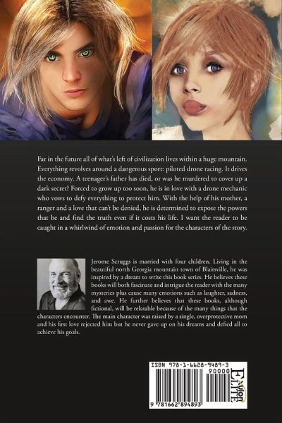 Far in the future all of what's left of civilization lives within a huge mountain. Everything revolves around a dangerous sport: piloted drone racing. It drives the economy. A teenager's father has died, or was he murdered to cover up a dark secret? Forced to grow up too soon, he is in love with a drone mechanic who vows to defy everything to protect him. With the help of his mother, a ranger and a love that can't be denied, he is determined to expose the powers that be and find the truth even if it costs his life. I want the reader to be caught in a whirlwind of emotion and passion for the characters of the story. Jerome Scruggs is married with four children. Living in the beautiful north Georgia mountain town of Blairsville, he was inspired by a dream to write this book series. He believes these books will both fascinate and intrigue the reader with the many mysteries plus cause many emotions such as laughter, sadness, and awe. He further believes that these books, although fictional, will be relatable because of the many things that the characters encounter. The main character was raised by a single, overprotective mom and his first love rejected him but he never gave up on his dreams and defied all to achieve his goals.
