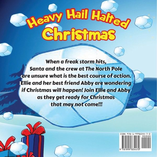 The Year Heavy Hail Halted Christmas. Oh to be preparing and excited for the coming holiday season only to find something may stop this happening. I would have been devastated... No Presents!!! Step inside the story and see how it unfolds. Who saves Christmas? Does it happen or not? Spend your bedtime or class reading with Ellie and Abby as they get ready and hope for Christmas to happen... A great book for encouraging your child, children on the rush up to Christmas... Does it take place? Who or what stops it? Who helps it. Find out! Buy now...