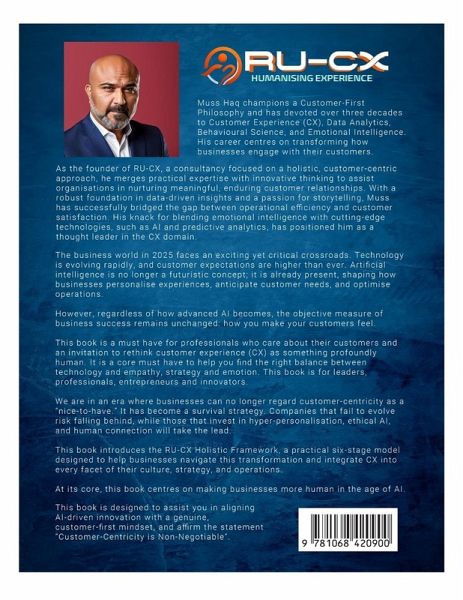RU-CX: 'The Year of AI & Customer Centricity' is an essential guide for forward-thinking businesses aiming to harness the power of AI and customer-centric strategies. This is an essential roadmap for businesses determined to excel in our rapidly changing, AI-driven marketplace that prioritises employees and customer experience. The aim is to encourage professionals to adopt a holistic approach that boosts operational efficiency and growth and creates emotional and lasting customer connections. In today's fast-paced technological landscape, it is a heartfelt reminder to envision business as a powerful force for positive, sustainable, and deep human connections. Whether you are at the helm of a Fortune 500 company or steering a start-up through turbulent times, this book provides the roadmap to future-proof your business. It is not just about adopting AI but also amplifying the human spirit at the core of every interaction. To help you embrace this guide and transform your organisation into one where every customer feels genuinely valued. Companies must move beyond superficial changes and commit to a holistic, ethical, and AI-enhanced approach to every customer interaction. In this book, I truly hope I inspired a fresh perspective on how customer centricity and customer experience can positively transform your organisation with the addition of AI. Also, the industry perspective of CX being a separate entity is no longer valid. Providing a personalised experience has been the main driver of building customer relationships since the dawn of trade. It is not a new concept. As we look at 2025 and beyond, the businesses leading effectively will blend AI with human empathy and people-centric leadership. This integration is crucial for establishing exceptional, lasting relationships with customers. Customer-centricity is not merely a strategic option; it is a firm commitment to making a meaningful impact on people's lives. By placing customers at the heart of your organisation and recognising that your employees are the heroes in delivering valuable customer experiences, you will create success and a legacy grounded in trust, loyalty, and authentic connections. Understanding that customer-centricity is a dynamic journey, not a static endpoint. It requires continuous adaptation to meet and exceed customer expectations while remaining aligned with your organisation's core values. Throughout this journey of considering AI blended into your services, do not forget the importance of upholding the human touch. Emotional intelligence embedded throughout your organisation goes beyond empathy, creativity, and authenticity, it will enhance every interaction. Let's pursue this transformative path toward true customer-centricity, which integrates leadership, culture, employees, customers, data, and technology.