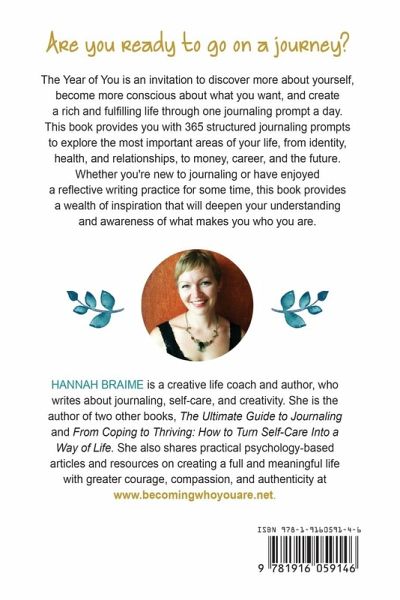 The Year of You is an invitation to discover more about yourself, become more conscious about what you want, and create a rich and fulfilling life through one journaling prompt a day. With this book, you can take the guess work out of journaling and use one writing prompt each day of the year to explore and unpack the most important aspects of your life and your being. Each month, you’ll focus on one important area of your life: January: Identity February: The Past March: Environment April: Fun May: Career June: Relationships July: Growth August: Money September: Travel and Adventure October: Health November: Spirituality December: The Future You can start in January, June or November; simply turn to today’s date and start writing! Whether you're new to journaling or have enjoyed a reflective writing practice for some time, The Year of You offers a wealth of inspiration that will deepen your understanding and awareness of what makes you who you are.