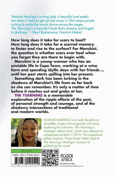 How long does it take for scars to heal? How long does it take for a scarred memory to fester and rise to the surface? For Marubini, the question is whether scars ever heal when you forget they are there to begin with. Marubini is a young woman who has an enviable life in Cape Town, working at a wine farm and spending idyllic days with her friends ... until her past starts spilling into her present. Something dark has been lurking in the shadows of Marubini’s life from as far back as she can remember. It’s only a matter of time before it reaches out and grabs at her. The Yearning is a memorable exploration of the ripple effects of the past, of personal strength and courage, and of the shadowy intersections of traditional and modern worlds.