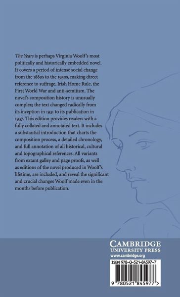 The Years is perhaps Virginia Woolf's most politically and historically embedded novel. It covers a period of intense social change from the 1880s to the 1930s, making direct reference to suffrage, Irish Home Rule, the First World War and anti-semitism. The novel's composition history is unusually complex; the text changed radically from its inception in 1931 to its publication in 1937. This edition provides readers with a fully collated and annotated text. It includes a substantial introduction that charts the composition process, a detailed chronology and full annotation of all historical, cultural and topographical references. All variants from extant galley and page proofs, as well as editions of the novel produced in Woolf's lifetime, are included, and reveal the significant and crucial changes Woolf made even in the months before publication.