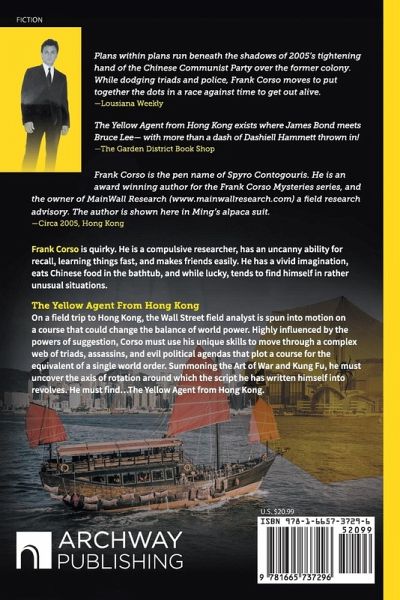 On a field trip to Hong Kong, the Wall Street field analyst is spun into motion on a course that could change the balance of world power. Highly influenced by the powers of suggestion, Corso must use his unique skills to move through a complex web of triads, assassins, and evil political agendas that plot a course for the equivalent of a single world order. Summoning the Art of War and Kung Fu, he must uncover the axis of rotation around which the script he has written himself into revolves. He must find...The Yellow Agent from Hong Kong.
