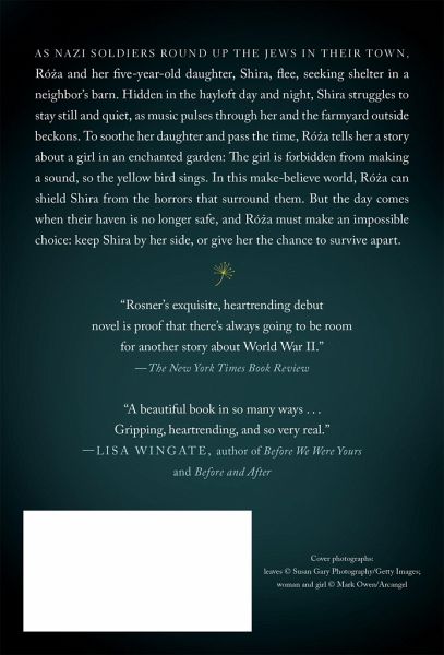 National Jewish Book Award Finalist "Rosner's exquisite, heart-rending debut novel is proof that there's always going to be room for another story about World War II....This is an absolutely beautiful and necessary novel, full of heartbreak but also hope, about the bond between mother and daughter, and the sacrifices made for love." -The New York Times In Poland, as World War II rages, a mother hides with her young daughter, a musical prodigy whose slightest sound may cost them their lives. As Nazi soldiers round up the Jews in their town, Róza and her 5-year-old daughter, Shira, flee, seeking shelter in a neighbor's barn. Hidden in the hayloft day and night, Shira struggles to stay still and quiet, as music pulses through her and the farmyard outside beckons. To soothe her daughter and pass the time, Róza tells her a story about a girl in an enchanted garden: The girl is forbidden from making a sound, so the yellow bird sings. He sings whatever the girl composes in her head: high-pitched trills of piccolo; low-throated growls of contrabassoon. Music helps the flowers bloom. In this make-believe world, Róza can shield Shira from the horrors that surround them. But the day comes when their haven is no longer safe, and Róza must make an impossible choice: whether to keep Shira by her side or give her the chance to survive apart. Inspired by the true stories of Jewish children hidden during World War II, Jennifer Rosner's debut is a breathtaking novel about the unbreakable bond between a mother and a daughter. Beautiful and riveting, The Yellow Bird Sings is a testament to the triumph of hope-a whispered story, a bird's song-in even the darkest of times.