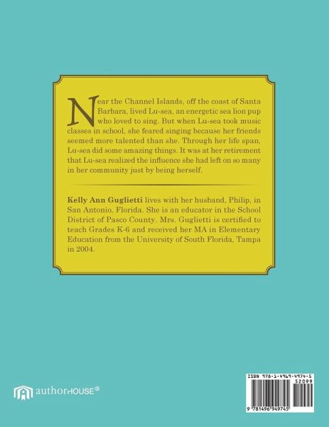 Near the Channel Islands, off the coast of Santa Barbara, lived Lu-sea, an energetic sea lion pup who loved to sing. But when Lu-sea took music classes in school, she feared singing because her friends seemed more talented than she. Through her life span, Lu-sea did some amazing things. It was at her retirement that Lu-sea realized the influence she had left on so many in her community just by being herself.