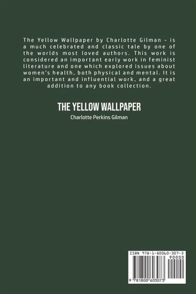 Do you want to read The Yellow Wallpaper? If so then keep reading... The Yellow Wallpaper by Charlotte Gilman - is a much celebrated and classic tale by one of the worlds most loved authors. This work is considered an important early work in feminist literature and one which explored issues about women's health, both physical and mental. It is an important and influential work, and a great addition to any book collection. What are you waiting for The Yellow Wallpaper is one click away, select the "Buy Now" button in the top right corner NOW!