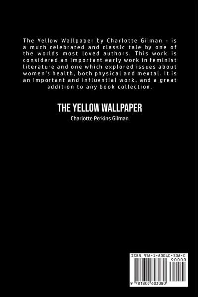 Do you want to read The Yellow Wallpaper? If so then keep reading... The Yellow Wallpaper by Charlotte Gilman - is a much celebrated and classic tale by one of the worlds most loved authors. This work is considered an important early work in feminist literature and one which explored issues about women's health, both physical and mental. It is an important and influential work, and a great addition to any book collection. What are you waiting for The Yellow Wallpaper is one click away, select the "Buy Now" button in the top right corner NOW!