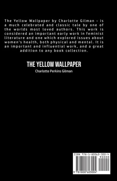 Do you want to read The Yellow Wallpaper? If so then keep reading... The Yellow Wallpaper by Charlotte Gilman - is a much celebrated and classic tale by one of the worlds most loved authors. This work is considered an important early work in feminist literature and one which explored issues about women's health, both physical and mental. It is an important and influential work, and a great addition to any book collection. What are you waiting for The Yellow Wallpaper is one click away, select the "Buy Now" button in the top right corner NOW!