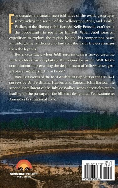 Fall 2024 The BookFest Second Place Award for Young Adult Historical Fiction For decades, mountain men told tales of the exotic geography surrounding the source of the Yellowstone River, and Jubilee Walker, to the dismay of his fiancée, Nelly Boswell, can't resist the opportunity to see it for himself. When Jubil joins an expedition to explore the region, he and his companions brave an unforgiving wilderness to find that the truth is even stranger than the legends. But a year later, when Jubil returns with a survey crew, he finds ruthless men exploiting the region for profit. Will Jubil's commitment to preventing the despoilment of Yellowstone's geographical wonders get him killed? Based on events of the 1870 Washburn Expedition and the 1871 surveys by Dr. Ferdinand Hayden and Captain John Barlow, the second installment of the Jubilee Walker series chronicles events leading up the passage of the bill that designated Yellowstone as America's first national park.