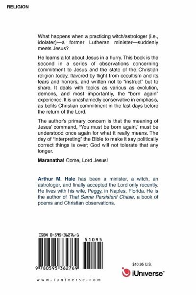 What happens when a practicing witch/astrologer (i.e., idolater) -- a former Lutheran minister -- suddenly meets Jesus? He learns a lot about Jesus in a hurry. This book is the second in a series of observations concerning commitment to Jesus and the state of the Christian religion today, flavored by flight from occultism and its fears and horrors, and written not to "instruct" but to share. It deals with topics as various as evolution, demons, and most importantly, the "born again" experience. It is unashamedly conservative in emphasis, as befits Christian commitment in the last days before the return of the Lord. The author's primary concern is that the meaning of Jesus' command, "You must be born again," must be understood once again for what it really means. The day of "interpreting" the Bible to make it say politically correct things is over; God will not tolerate that any longer. Maranatha! Come, Lord Jesus!