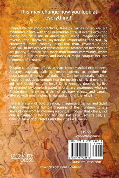 This will change how you look at everything! Shaped by her yogic practices, Annajoy carries on an elegant meditative dance with the unremarkable trivial events occurring during her daily life in Amsterdam. Using imagination and reverie, she discovers mysterious minidramas enacted by characters more cleverly disguised than revelers during Carnival. In her evolved consciousness, Amsterdam becomes an art gallery, funhouse and more-than-human community, where meaning is a daily event, and oases of mood catapult her into moments of ecstasy. Despite courageous efforts to share these mystical experiences, Annajoy tragically fails to inspire others to explore this unsuspected dimension of daily life. Will her rationally-inclined husband hack deep enough into the mystery of trivial events to assist her? Could her city help? Or must Annajoy live surrounded by people who see Amsterdam as a den of ordinary streets and canals, littered with meaningless trivia gesturing in the wind? Here is a story of bold creation, imaginative genius and Spirit hiding beneath the humble disguises of the mundane. It is a story of one woman crossing a spiritual frontier that offers a glimpse, not only of her and her city but, as in Escher's ball, an unusual view of ourselves and the cities we live in.