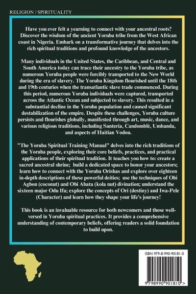 Have you ever felt a yearning to connect with your ancestral roots? Discover the wisdom of the ancient Yoruba tribe from the West African coast of Nigeria. Embark on a transformative journey that delves into the rich spiritual traditions and profound knowledge of the ancestors. Many people in the United States, the Caribbean, and Central and South America today can trace their ancestry to the Yoruba tribe, as countless Yoruba people were forcibly transported to the New World during the era of slavery. The Yoruba Kingdom flourished until the 18th and 19th centuries when the transatlantic slave trade began. During this period, innumerable Yoruba individuals were captured, transported across the Atlantic Ocean, and subjected to slavery. This resulted in a significant decline of the Yoruba population and caused severe destabilization of the empire. Despite these challenges, Yoruba culture persists and thrives globally, manifested through art, music, dance, and various religious traditions, including Santería, Candomblé, Umbanda, and aspects of Haitian Vodou. "The Yoruba Spiritual Training Manual" delves into the rich traditions of the Yoruba people, exploring their core beliefs, practices, and practical applications of their spiritual tradition. It teaches you how to:Create a sacred ancestral shrine and build a dedicated space to honor your ancestors. Connect with the Yoruba Orishas and explore over twenty in-depth descriptions of the powerful Orishas, uncovering their roles, symbols, and offerings. Master the techniques of both Obi Agbon (coconut) and Obi Abata (kola nut) divination. Gain a concise understanding of the sixteen major Odu Ifa. Explore the concepts of Ori (destiny) and Iwa-Pele (character), and learn how they shape your life's journey, and much more! This book is an invaluable resource for both newcomers and those well-versed in Yoruba spiritual practices. It provides a comprehensive understanding of contemporary beliefs, offering readers a solid foundation to build upon.