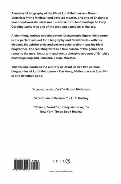 Modern Library's 100th best non-fiction book of all time, and John F. Kennedy's favourite book. A masterful biography of the life of Lord Melbourne - Queen Victoria's Prime Minister and devoted mentor, and one of England's most controversial statesmen - whose turbulent marriage to Lady Caroline Lamb was one of the greatest scandals of the era. A charming, curious and altogether idiosyncratic figure, Melbourne is the perfect subject for a biography and David Cecil - with his elegant, thoughtful style and perfect scholarship - was his ideal biographer. The resulting work is a true classic of the genre and remains the most important and comprehensive account of Britain's most beguiling and individual Prime Minister. This volume contains the entirety of David Cecil's two seminal biographies of Lord Melbourne - The Young Melbourne and Lord M - in one definitive book. "A superb work of art" - Harold Nicholson "A historian of the heart" - L. P. Hartley