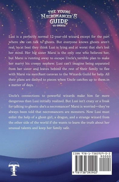 Lusi is a perfectly normal 12-year-old wizard except for the part where she can talk to ghosts. But everyone knows ghosts aren't real, so at best they think Lusi is lying and at worst that she's lost her mind. Her big sister Marsi is the only one who believes her, but Marsi is running away to escape Uncle's terrible plan to make her marry his creepy nephew. Lusi can't imagine being separated from her sister and leaves behind the rest of their family to flee with Marsi via merchant caravan to the Wizards Guild for help. All their plans are dashed to pieces when Uncle catches up to them in a matter of days. Uncle's connections to powerful wizards make him far more dangerous than Lusi initially realized. But Lusi isn't crazy or a freak for talking to ghosts: she's a necromancer! Marsi is worried-they've always been told that necromancers are monsters. Lusi needs to learn more to set both their minds at ease. She must enlist the help of a ghost girl, a dragon, and a strange wizard from the other side of the world if she wants to control her unusual talents and keep her family safe.