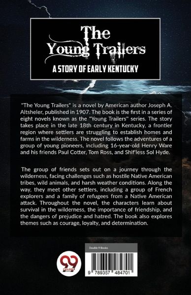 "The Young Trailers" is a novel by American author Joseph A. Altsheler, published in 1907. The book is the first in a series of eight novels known as the "Young Trailers'' series. The story takes place in the late 18th century in Kentucky, a frontier region where settlers are struggling to establish homes and farms in the wilderness. The novel follows the adventures of a group of young pioneers, including 16-year-old Henry Ware and his friends Paul Cotter, Tom Ross, and Shif'less Sol Hyde. The group of friends sets out on a journey through the wilderness, facing challenges such as hostile Native American tribes, wild animals, and harsh weather conditions. Along the way, they meet other settlers, including a group of French explorers and a family of refugees from a Native American attack. Throughout the novel, the characters learn about survival in the wilderness, the importance of friendship, and the dangers of prejudice and hatred. The book also explores themes such as courage, loyalty, and determination.
