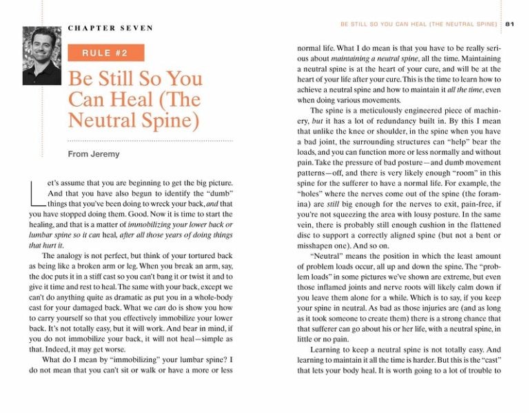 Chris Crowley, a former litigator (Davis Polk & Wardwell), is the coauthor, with Henry S. Lodge, of the Younger Next Year books, and the coauthor, with Jen Sacheck, PhD, of Thinner This Year. Though in his eighties, he fully lives the life, skiing black diamonds and routinely doing fifty-mile bike rides. He and his wife live in New York City. Jeremy James, DC, CSCS, is Director of the Aspen Club Back Institute. He became a Doctor of Chiropractic (instead of going into traditional medicine like almost everyone else in his family) because of his own struggles with sports-induced back pain as a young athlete, and developed his behavioral/whole body method while working with serious athletes for over a decade. He lives with his wife and son in Aspen, Colorado.
