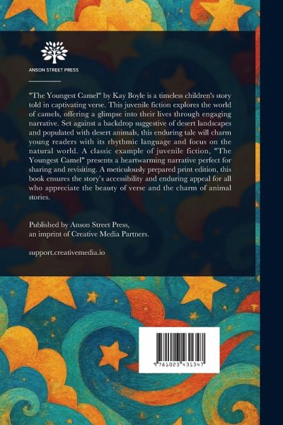 "The Youngest Camel" by Kay Boyle is a timeless children's story told in captivating verse. This juvenile fiction explores the world of camels, offering a glimpse into their lives through engaging narrative. Set against a backdrop suggestive of desert landscapes and populated with desert animals, this enduring tale will charm young readers with its rhythmic language and focus on the natural world. A classic example of juvenile fiction, "The Youngest Camel" presents a heartwarming narrative perfect for sharing and revisiting. A meticulously prepared print edition, this book ensures the story's accessibility and enduring appeal for all who appreciate the beauty of verse and the charm of animal stories. This work has been selected by scholars as being culturally important, and is part of the knowledge base of civilization as we know it. This work is in the public domain in the United States of America, and possibly other nations. Within the United States, you may freely copy and distribute this work, as no entity (individual or corporate) has a copyright on the body of the work. Scholars believe, and we concur, that this work is important enough to be preserved, reproduced, and made generally available to the public. We appreciate your support of the preservation process, and thank you for being an important part of keeping this knowledge alive and relevant.
