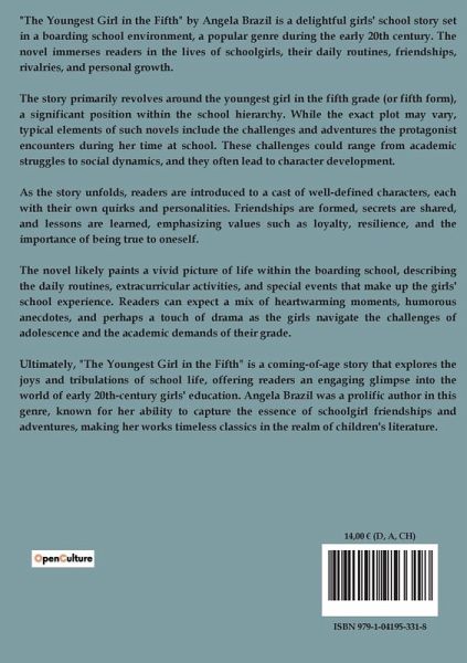 "The Youngest Girl in the Fifth" by Angela Brazil is a classic school story that follows the journey of Gwen Gascoyne, a young girl who unexpectedly finds herself promoted to the Fifth Form at Rodenhurst, a prestigious school. The narrative begins with Gwen's surprise at being moved up in the middle of the term, a decision made by the headmistress, Miss Roscoe, due to Gwen's academic potential. However, this change is not without its challenges. Gwen faces hostility from her new classmates, who are displeased with her sudden promotion, and she struggles to find her place among them. Her former classmates in the Upper Fourth are also envious, leaving Gwen in a social limbo. The story takes a turn when Gwen, along with her new acquaintance Netta Goodwin, accidentally breaks a parcel containing a tea set belonging to Miss Roscoe. In a bid to avoid the headmistress's wrath, the girls concoct a plan to replace the broken items without her knowledge. This incident leads Gwen into a financial predicament, as she must find a way to pay for the replacement china, which costs more than she anticipated. Throughout the narrative, Gwen's character is tested as she navigates the complexities of school life, friendships, and personal responsibility. Angela Brazil's tale is not just about school challenges but also about personal growth and resilience. Gwen's journey is one of self-discovery, as she learns to stand up for herself, make amends for her mistakes, and ultimately find her place in the Fifth Form. The story captures the essence of early 20th-century school life, with its strict rules and social hierarchies, while also highlighting the timeless themes of friendship and perseverance.