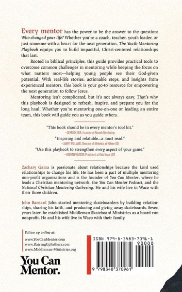The Youth Mentoring Playbook Volume 1: A 30-Day Guide to Invest in the Next Generation Every mentor has the power to be the answer to the question: Who changed your life? Whether you're a coach, teacher, youth leader, or just someone with a heart for the next generation, The Youth Mentoring Playbook equips you to build impactful, Christ-centered relationships that last. Rooted in biblical principles, this guide provides practical tools to overcome common challenges in mentoring while keeping the focus on what matters most-helping young people see their God-given potential. With real-life stories, actionable steps, and insights from experienced mentors, this book is your go-to resource for empowering the next generation to follow Jesus. Mentoring isn't complicated, but it's not always easy. That's why this playbook is designed to refresh, inspire, and prepare you for the long haul. Whether you're mentoring one-on-one or leading an entire team, this book will guide you as you guide others.
