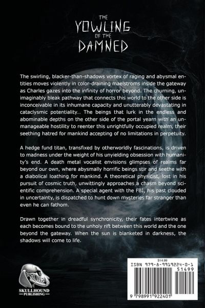 The swirling, blacker-than-shadows vortex of raging and abysmal entities moves violently in color-draining maelstroms inside the gateway as Charles gazes into the infinity of horror beyond. The churning, unimaginably bleak pathway that connects this world to the other side is inconceivable in its inhumane capacity and unutterably devastating in cataclysmic potentiality... The beings that lurk in the endless and abominable depths on the other side of the portal yearn with an unmanageable hostility to reenter this unrightfully occupied realm, their seething hatred for mankind accepting of no limitations in perpetuity. A hedge fund titan, transfixed by otherworldly fascinations, is driven to madness under the weight of his unyielding obsession with humanity's end. A death metal vocalist envisions glimpses of realms far beyond our own, where abysmally horrific beings stir and seethe with a diabolical loathing for mankind. A theoretical physicist, lost in his pursuit of cosmic truth, unwittingly approaches a chasm beyond scientific comprehension. A special agent with the FBI, his past clouded in uncertainty, is dispatched to hunt down mysteries far stranger than even he can fathom. Drawn together in dreadful synchronicity, their fates intertwine as each becomes bound to the unholy rift between this world and the one beyond the gateway. When the sun is blanketed in darkness, the shadows will come to life. If you enjoyed the supernatural horror of Lovecraft's "The Call of Cthulhu," you won't want to miss this thrilling tale of cosmic terror.
