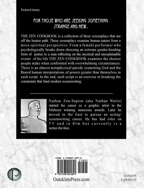 For those who are seeking something strange and new... THE ZEN COOKBOOK is a collection of three screenplays that are off the beaten path. These screenplays examine human nature from a more spiritual perspective. From a female performer who psychologically breaks down choosing an extreme gender-bending form of justice to a man reflecting on the mystical and unexplainable events of his life THE ZEN COOKBOOK examines the choices people make when confronted with overwhelming circumstances. There is an almost metaphysical parody examining God and the flawed human interpetations of powers greater than themselves in each script. In the end, each script is an exercise in breaking the constraints that bind modern screenwriting.